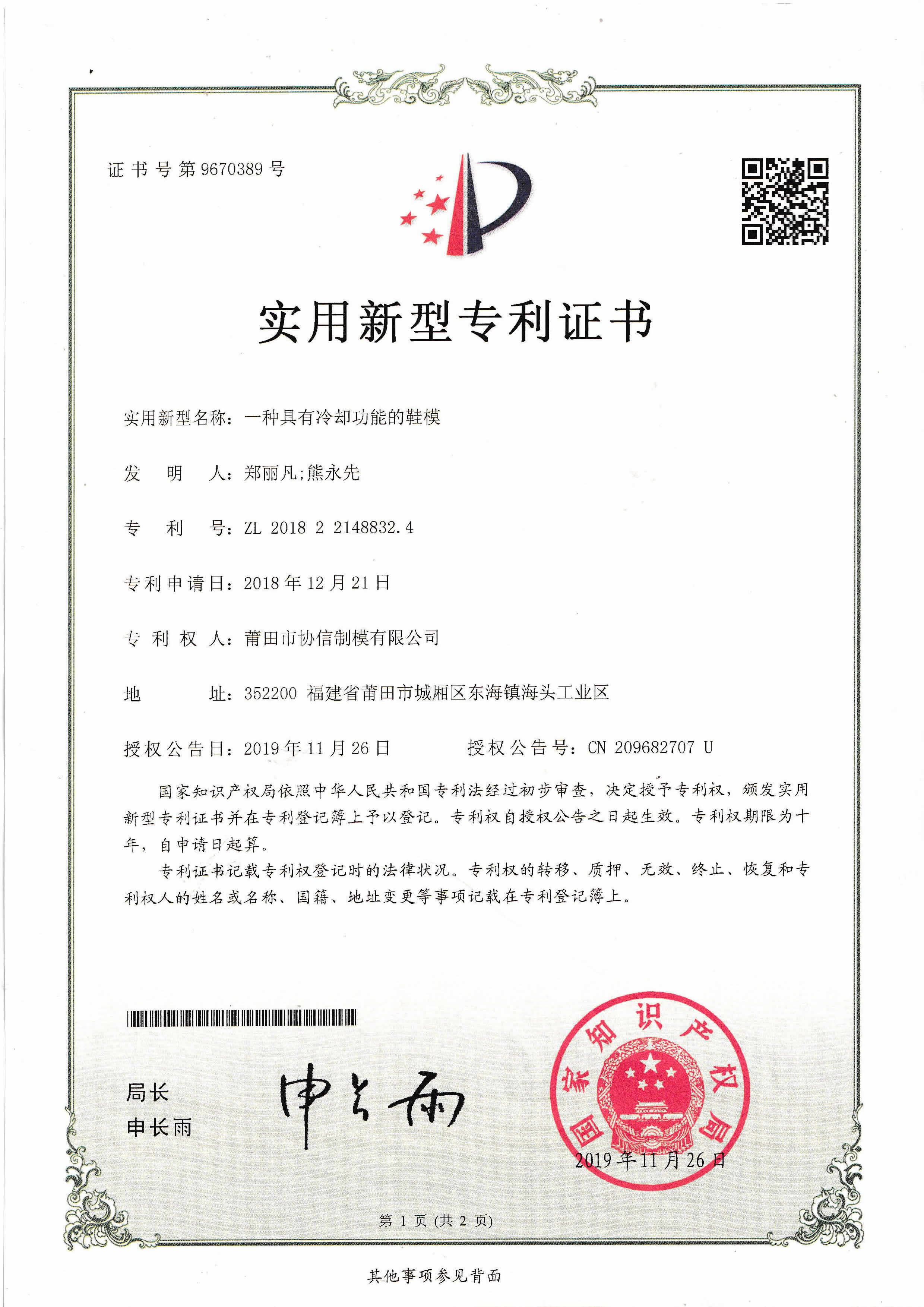 2個(gè)發(fā)明專利證書...